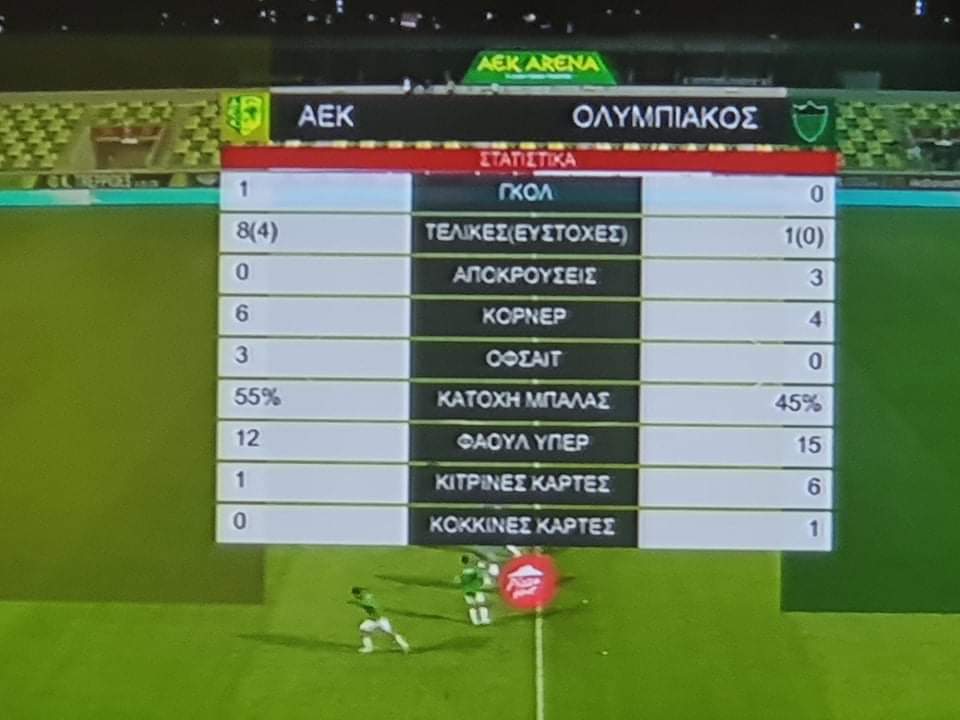 TOP STORIES / ΠΟΔΟΣΦΑΙΡΟΟι αριθμοί του αγώνα… Δευτέρα, 27 Σεπτεμβρίου 2021, 21:47Δευτέρα, 27 Σεπτεμβρίου 2021, 21:47 ShareTweet Η ομάδα μας αντιμετώπισε εντός έδρας τον Ολυμπιακό για την 4η αγωνιστική του πρωταθλήματος. Στην πιο κάτω φωτογραφία μπορείτε να δείτε τα στατιστικά της αναμέτρησης όπως τα πρόβαλε η Primetel μετά το τέλος του αγώνα.