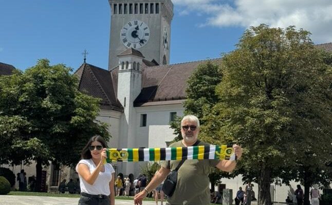 Ο Πανίκος με την Σέργια είναι στη Σλοβενία για το ματς με την Τσέλιε και πόζαραν στον φακό.