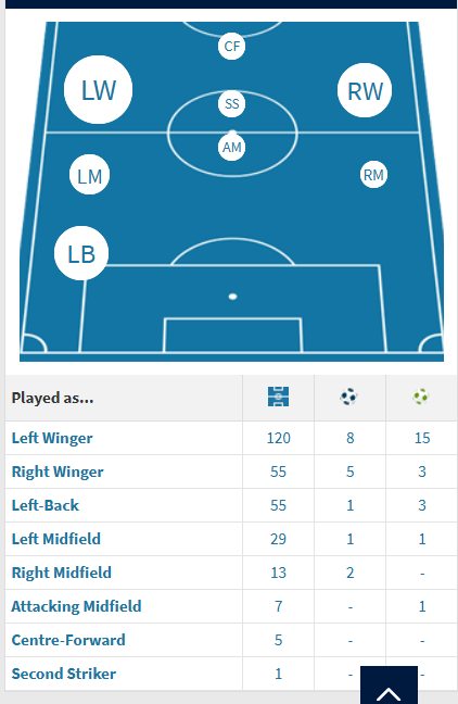 Ψάχνοντας λίγο τις θέσεις που έχει παίξει στην καριέρα του, διαπιστώνει κανείς πως όντως πρόκειται για πολυθεσίτη. Σύμφωνα με την γνωστή ιστοσελίδα transfermarkt, ο 31χρονος Ισπανός άσος μετρά 120 ματς ως εξτρέμ και 55 ως μπακ. Και όλα αυτά από την αριστερή πλευρά χωρίς να υπολογίσουμε τη δεξιά.