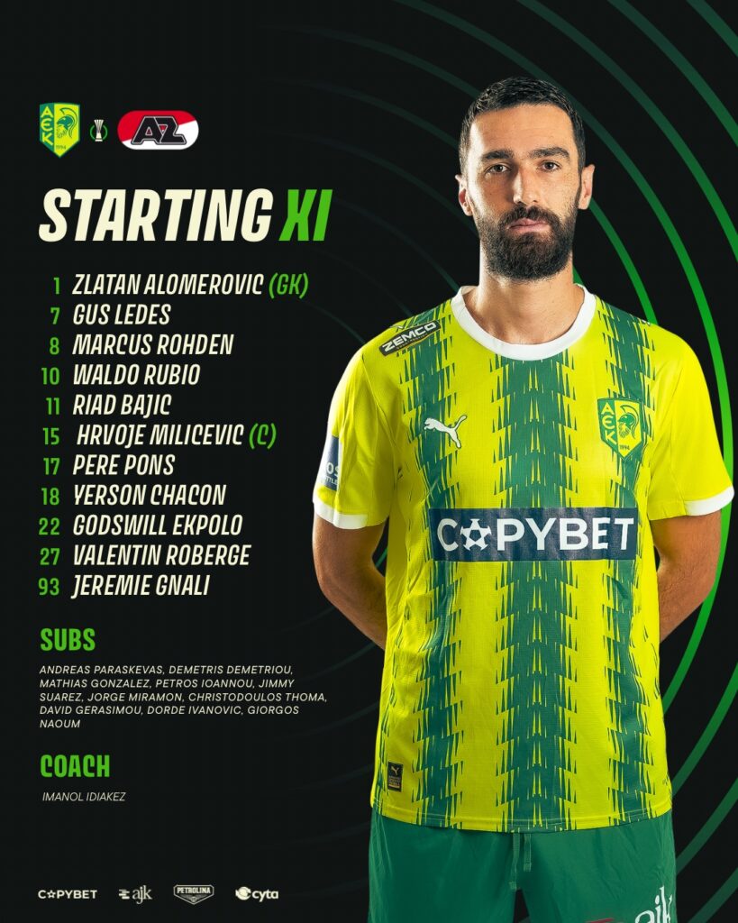 TOP STORIES / ΠΟΔΟΣΦΑΙΡΟΗ εντεκάδα μας με την Άλκμααρ! (ΦΩΤΟ) Πέμπτη, 2 Οκτωβρίου 2025, 20:51Πέμπτη, 2 Οκτωβρίου 2025, 20:51 ShareTweet Η ομάδα μας αντιμετωπίζει την Άλκμααρ για την 1η αγωνιστική της League Phase του Conference League και πιο κάτω μπορείτε να δείτε την εντεκάδα που επέλεξε ο Ιδιάκεθ. Αναλυτικά: