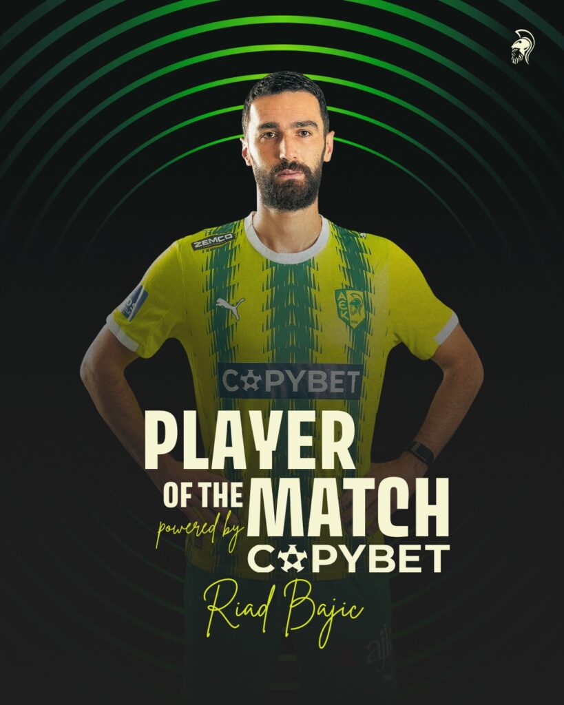 Ο Riad Bajic αναδείχθηκε με τις ψήφους των φιλάθλων μας ως κορυφαίος παίκτης για το ευρωπαϊκό παιχνίδι κόντρα στην AZ Alkmaar. Ακολούθησε σε ψήφους ο Waldo Rubio και στην συνέχεια ο Marcus Rohden”.