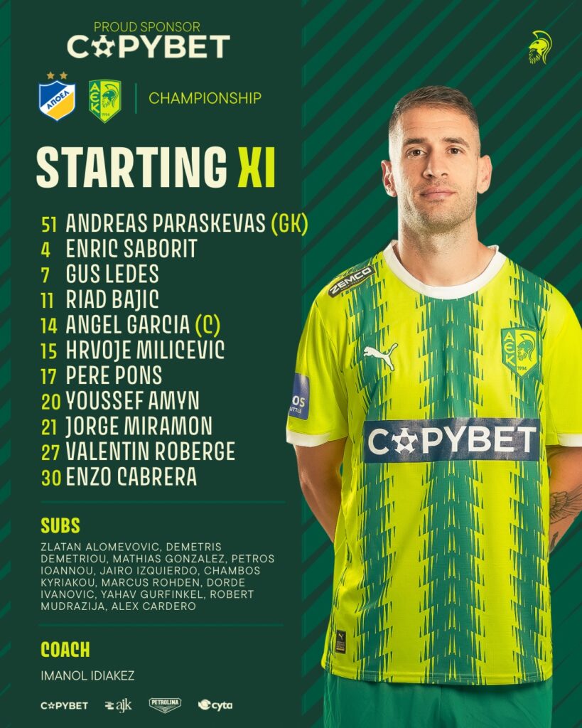 TOP STORIES / ΠΟΔΟΣΦΑΙΡΟΗ εντεκάδα μας κόντρα στον ΑΠΟΕΛ (Φωτογραφία) Κυριακή, 8 Φεβρουαρίου 2026, 15:03 ShareTweet Η ομάδα μας αντιμετωπίζει τον ΑΠΟΕΛ στο ΓΣΠ για την 21η αγωνιστική και πιο κάτω μπορείτε να δείτε την εντεκάδα που επέλεξε ο Ιδιάκεθ. Αναλυτικά: