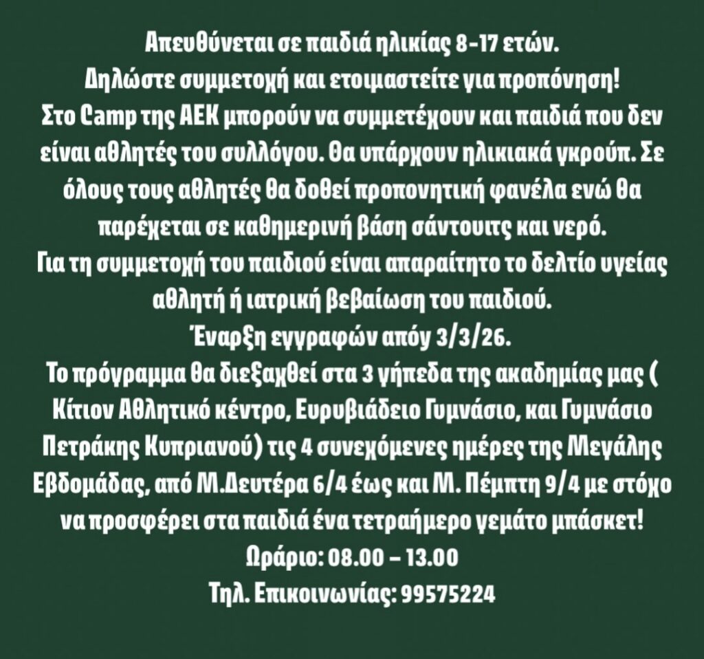 TOP STORIES / ΑΚΑΔΗΜΙΕΣ / ΜΠΑΣΚΕΤΈρχεται το 7ο Easter Basketball Camp Παρασκευή, 27 Φεβρουαρίου 2026, 1:23Παρασκευή, 27 Φεβρουαρίου 2026, 1:23 ShareTweet Η ακαδημία μας στο μπάσκετ διοργανώνει το 7ο Easter Basketball Camp. Αναλυτικά: