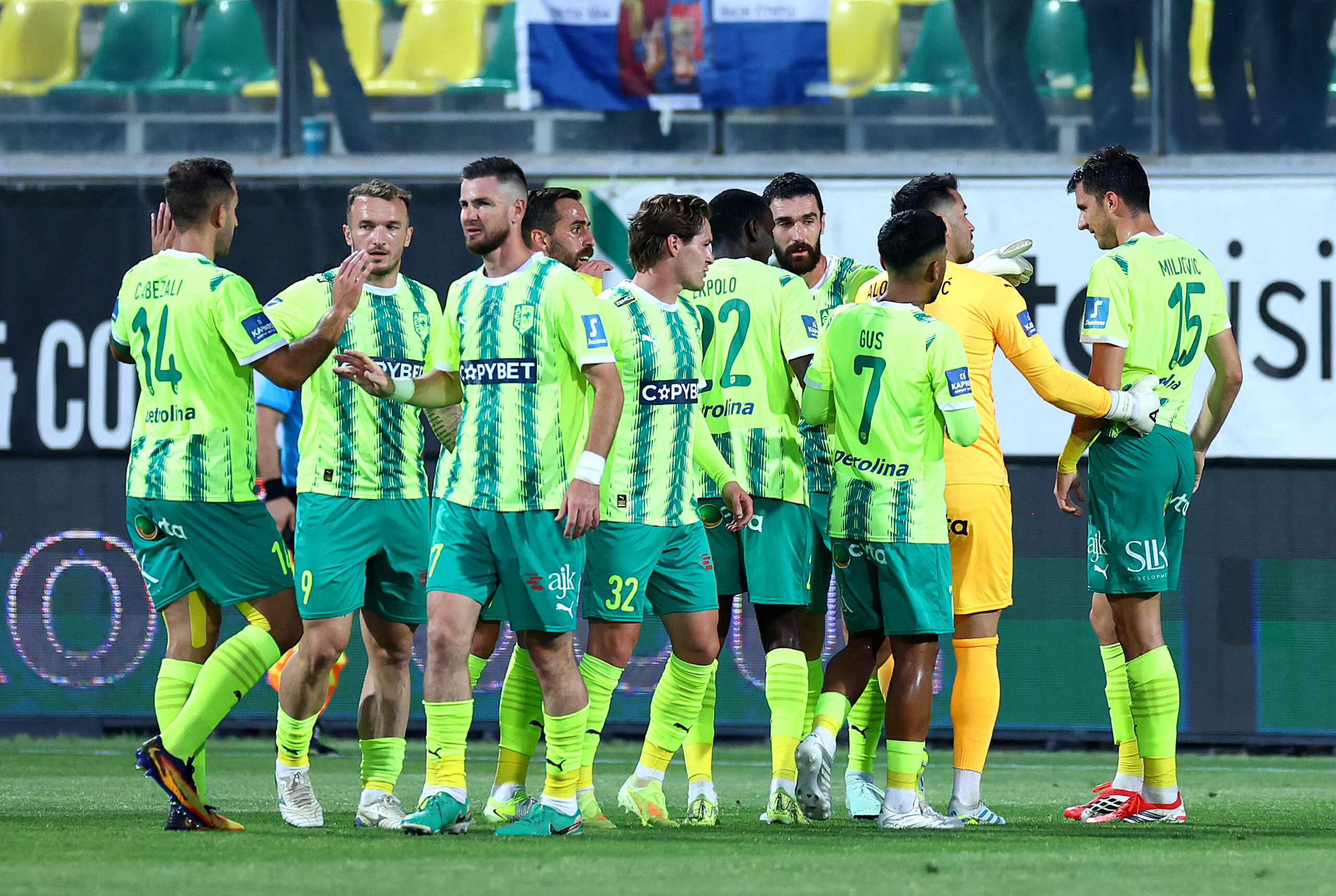 Στο πρώτο ημίχρονο η ομάδα μας αρχικά είχε καλές στιγμές με Rohden (16′), Mudrazija (31′) και τελικά στο 36ο λεπτό κατάφερε να πάρει προβάδισμα στο σκορ, με τον Milicevic να σκοράρει με καρφωτή κεφαλιά μετά την εκτέλεση κόρνερ του Ledes. O Bajic (45+1′) είχε την τελευταία καλή στιγμή του πρώτου μέρους.