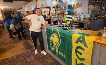 Ο φίλος της ομάδας μας, Γιάννος Ευθυμίου, έφτασε στο Λονδίνο για το παιχνίδι με την Κρίσταλ Πάλας. Μάλιστα ο ίδιος έκανε κατάληψη σε μπυραρία της περιοχής, βάζοντας σε πρώτο πλάνο …